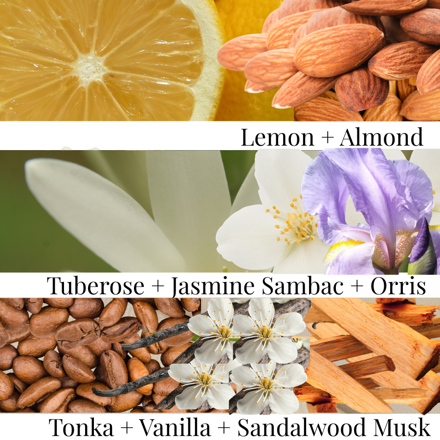 Top: Bergamot, Lemon, Almond